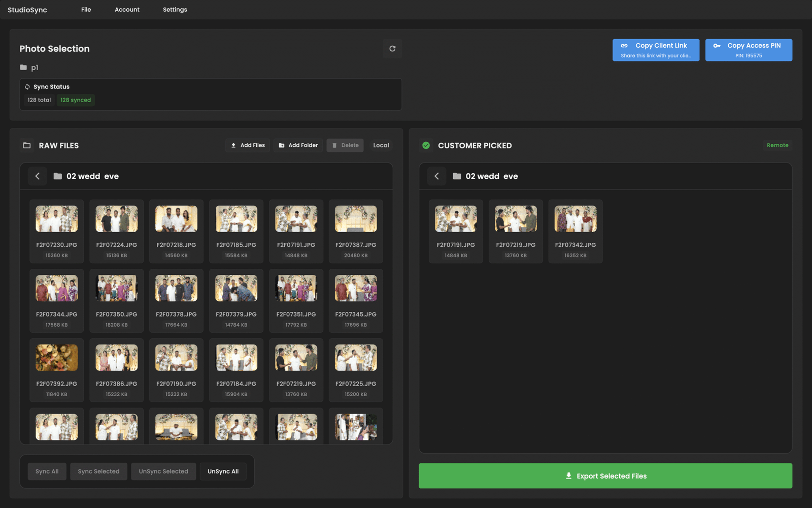 From small portrait sessions to massive wedding shoots, StudioSync can manage hundreds of gigabytes of RAW photos—without slowing you down.